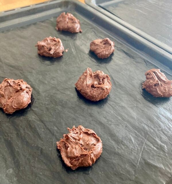 7. Noliek masu malā uz 5-10min. Tikmēr nomazgā traukus, sagatavo cepešpannu-ieklāj cepamo papīru.